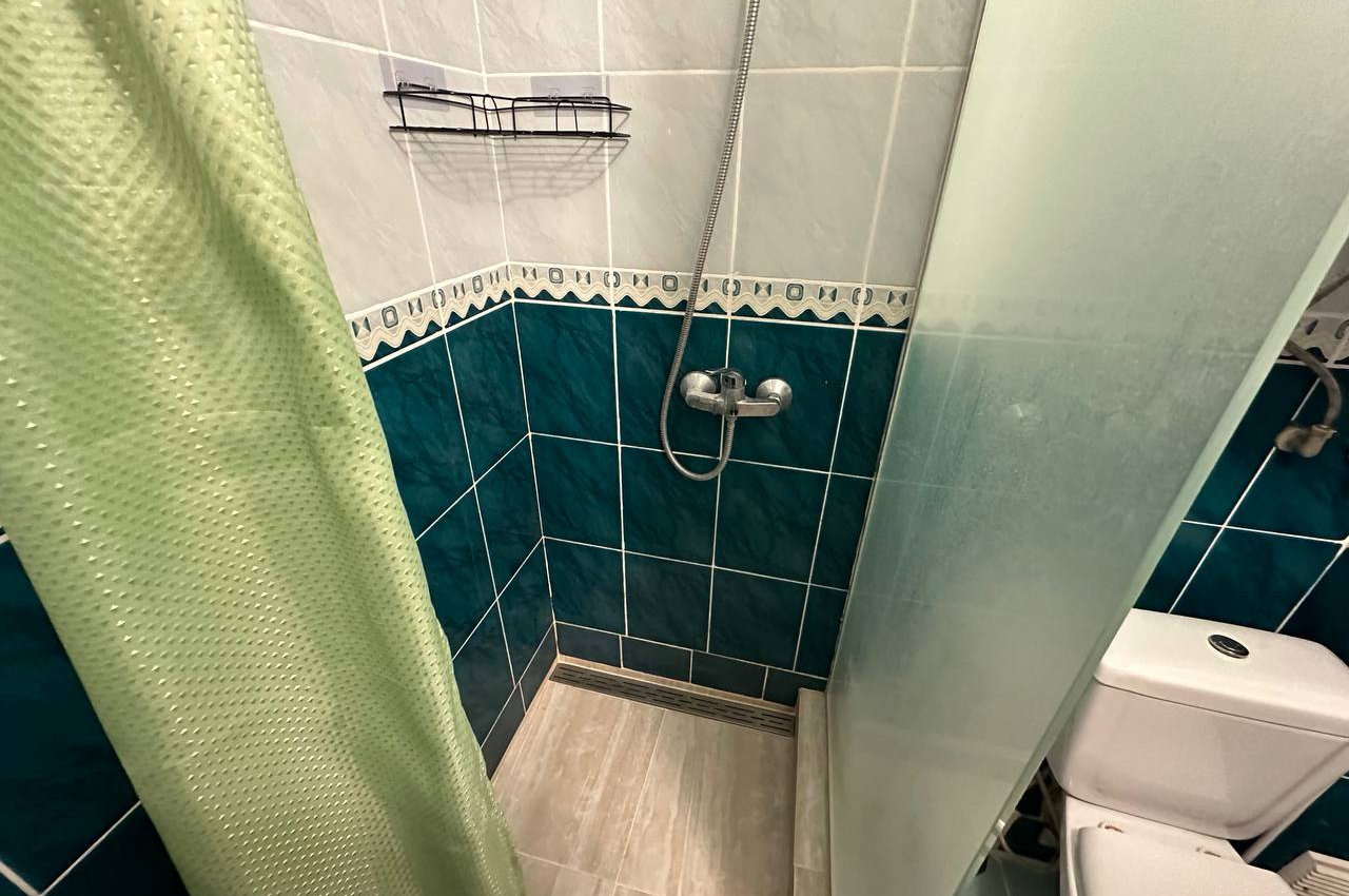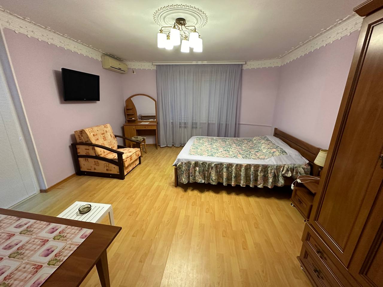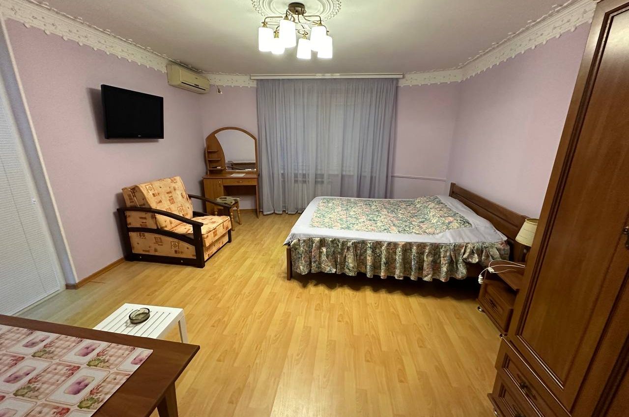 Номер состоит из санузла, кухни и спальни. Спальня оснащена двуспальной кроватью, телевизором, кондиционером и комодом с зеркалом. В кухни присутствуют холодильник и все необходимое для готовки.