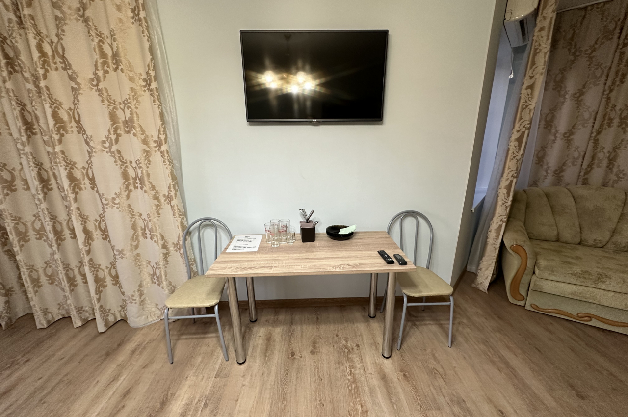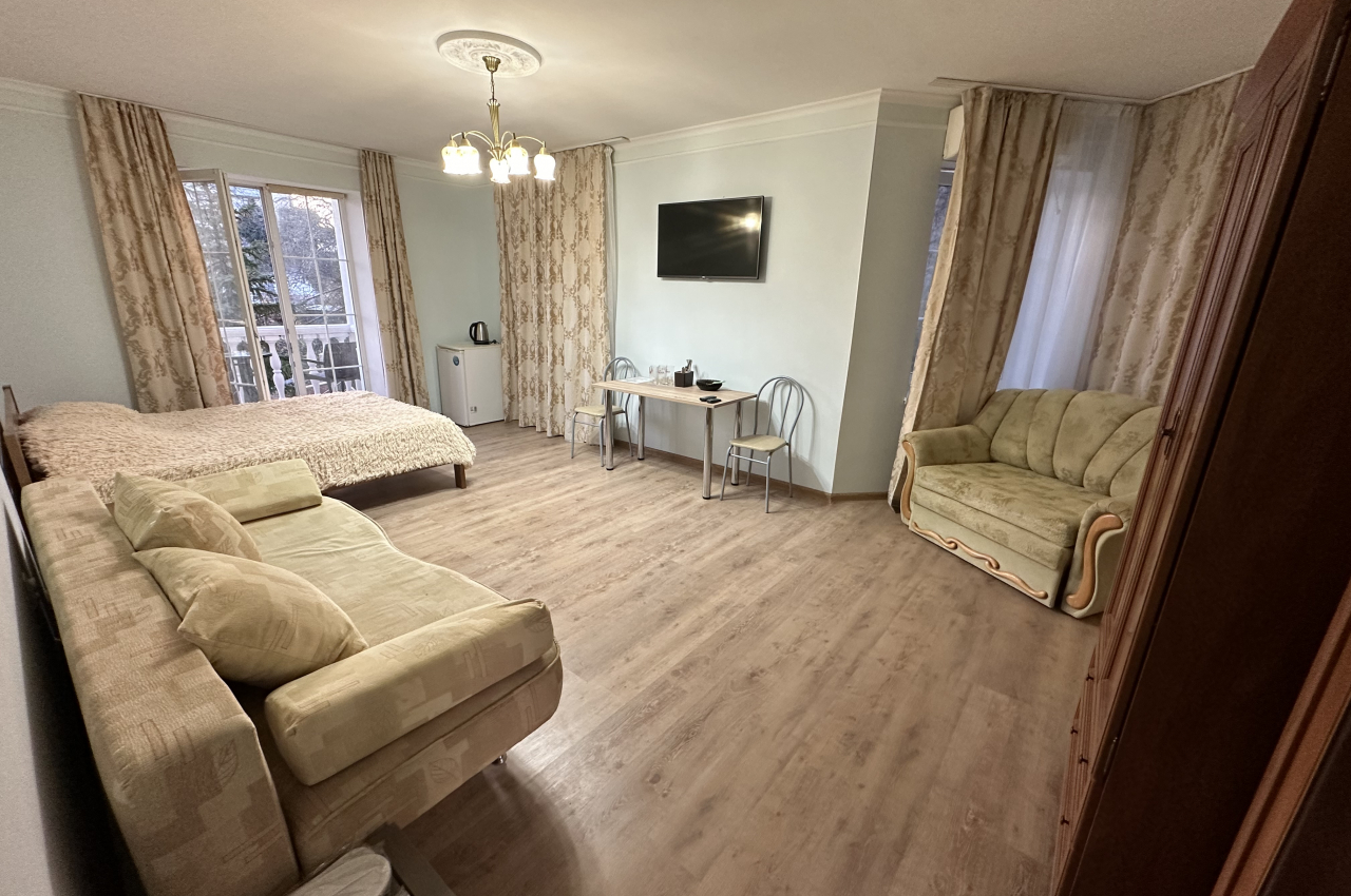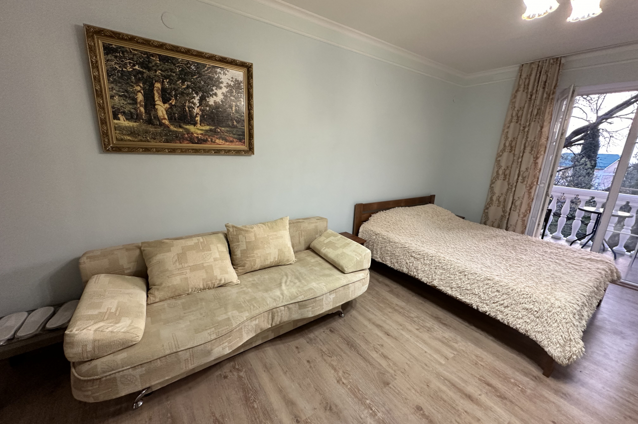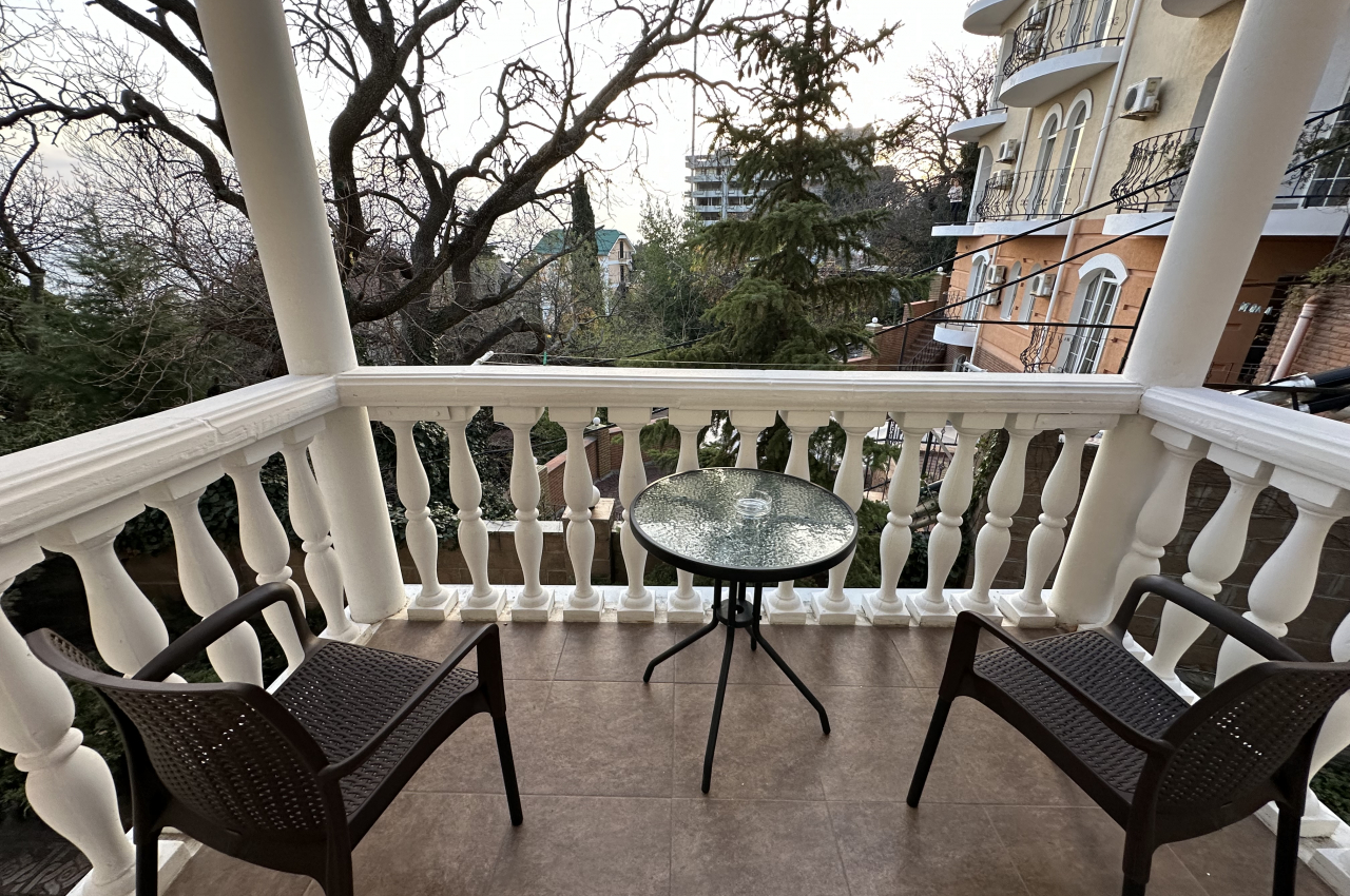 Номер выполнен в светлых зеленых тонах, где создается атмосфера уюта и спокойствия. Номер оборудован всеми необходимыми для вас удобствами. Гостевой дом «Климентина» рад предоставить вам комфортный отдых в Мисхор.